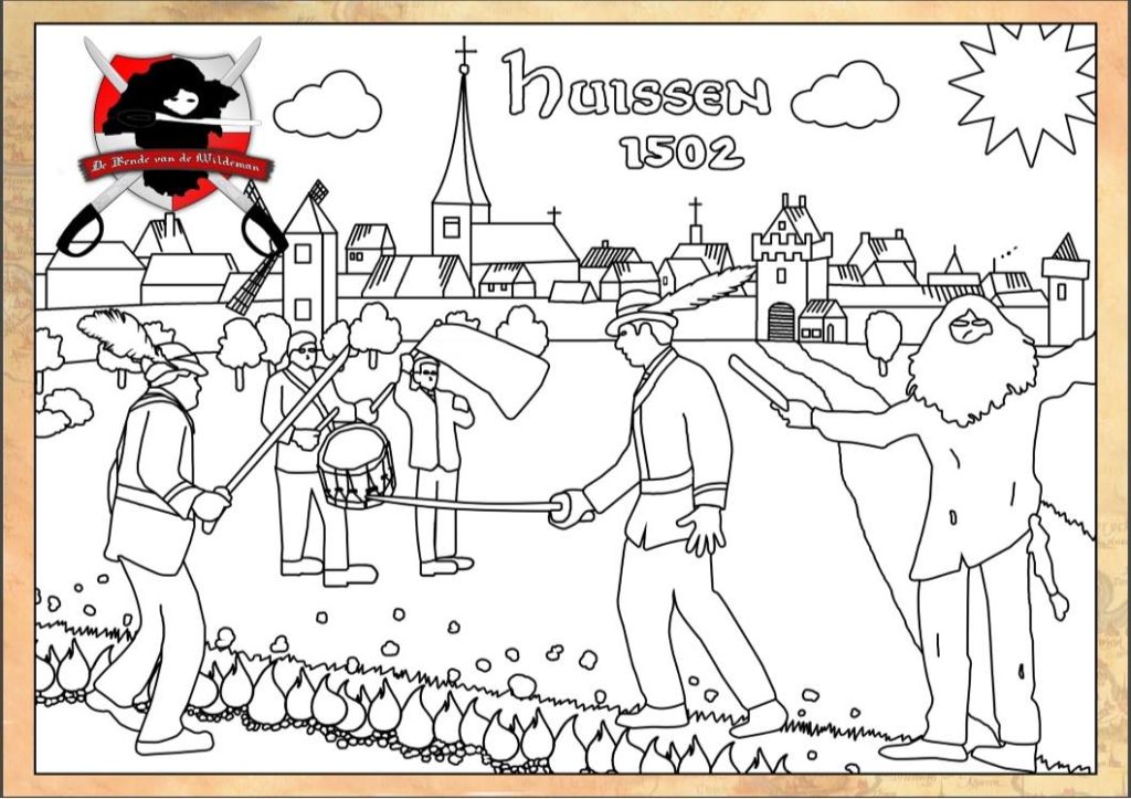 Heeft u ze al zien liggen, de kleurplaat van de Bende van de Wildeman? U heeft nog 2 weken om hem te bemachtigen en in te kleuren, want op zaterdag 30 juni vind de Slag om Huissen plaatst!